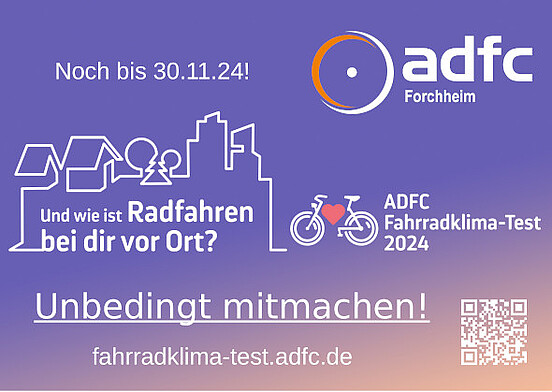 Der ADFC-Fahrradklima-Test läuft nur noch bis zum 30. November. Deshalb rufen wir alle Radfahrerinnen und Radfahrer auf, sich an unserer Befragung zu beteiligen. Sag‘ das auch gern Deinen Verwandten, Bekannten, Freund:innen weiter. Jede einzelne Stimme ist wichtig, denn die Ergebnisse helfen den Verantwortlichen in der Verkehrsplanung, Schwachstellen zu erkennen und das Angebot für Radfahrende weiter zu verbessern. Um aussagekräftige Ergebnisse zu erhalten, ist eine bestimmte Menge an Teilnahmen je nach Größe der Orte nötig. Schau dazu gern in die wöchentlich aktualisierte Liste der Teilnahmezahlen, welche Ortschaften es noch nicht über die Hürde geschafft haben. Ergänzend dazu gibt es in den kommenden Tagen eine Karte, auf der Du die Teilnahmen bei Dir vor Ort grafisch aufbereitet sehen kannst – diese kannst Du auch gern in den sozialen Medien teilen. Aktiviere besonders Deine Verwandten, Freund:innen und Bekannten in diesen Orten zur Teilnahme. Nimm selbst teil, wenn Du den Ort aus Radfahrsicht kennst. Unser Ziel ist es, möglichst viele Orte in der Gesamtauswertung darstellen zu können. | ![]() |