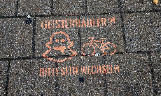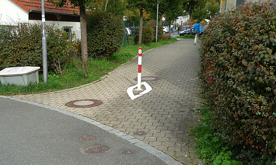 ![]() Da sagt man immer, Neunkirchen macht nichts für die Radfahrenden. Diese durchaus kreative Markierung eines Hindernisses beweist das Gegenteil. | ![]() |