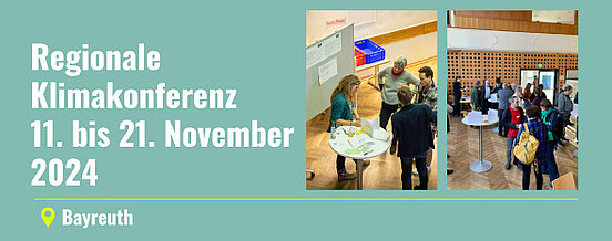 ![]() In der Zeit 11. - 21. November findet in Bayreuth eine regionale Klimakonferenz mit Teilkonferenzen zu zahlreichen interessanten Themen statt. Etwas unterbesetzt scheint jedoch das Thema Mobilität am 18. November zu sein. Da hätte man durchaus mehr erwartet. | ![]() |