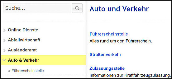 ![]() Auf der Homepage des Landratsamtes findet man nur wenig zum Radverkehr. Passenderweise firmiert der betreffende Arbeitsbereich unter "Auto & Verkehr". Der Radverkehrsbeauftragte versteckt sich übrigens im Tiefbauamt. | ![]() |