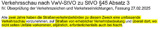 In einem entsprechenden Merkblatt ist genau geregelt wo, wie oft und wie solche durchzuführen sind. Unter anderem heißt es dort, dass auch "Sachkundige aus Kreisen der Verkehrsteilnehmenden" einzuladen sind. Zweifelsohne gehört dazu der ADFC. In Forchheim scheinen diese Regelungen nicht bekannt zu sein. Zumindest wissen wir nichts von irgendeiner Beteiligung des ADFC an einer Verkehrsschau. Wir haben mehrfach unsere Mitwirkung angeboten, wurden aber abgewiesen mit der Begründung: "Wir verfügen selbst über ausreichende Sachkunde." Mal sehen, ob wir künftig mehr erreichen, wenn wir uns mit diesem Thema näher beschäftigen werden. |